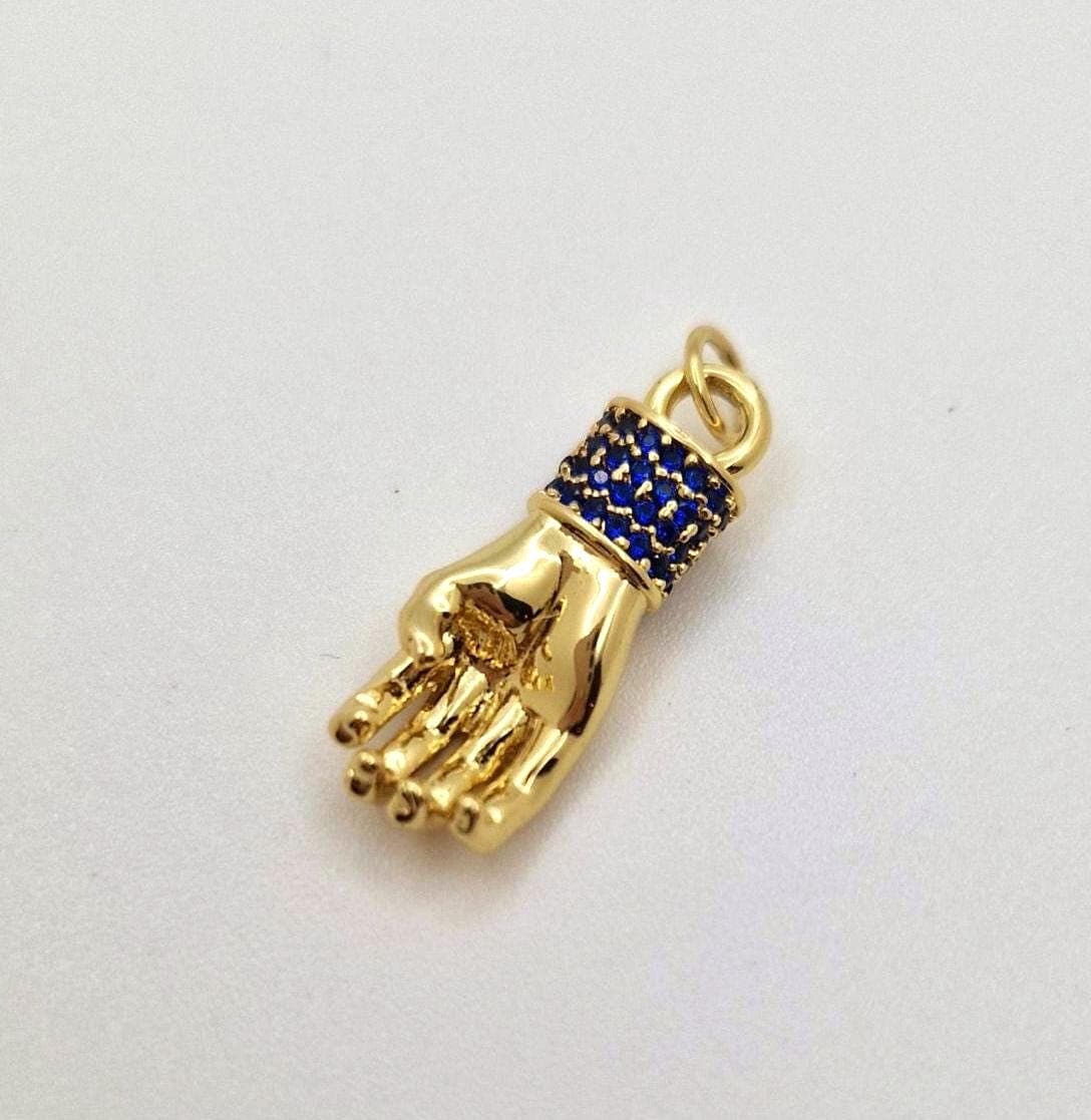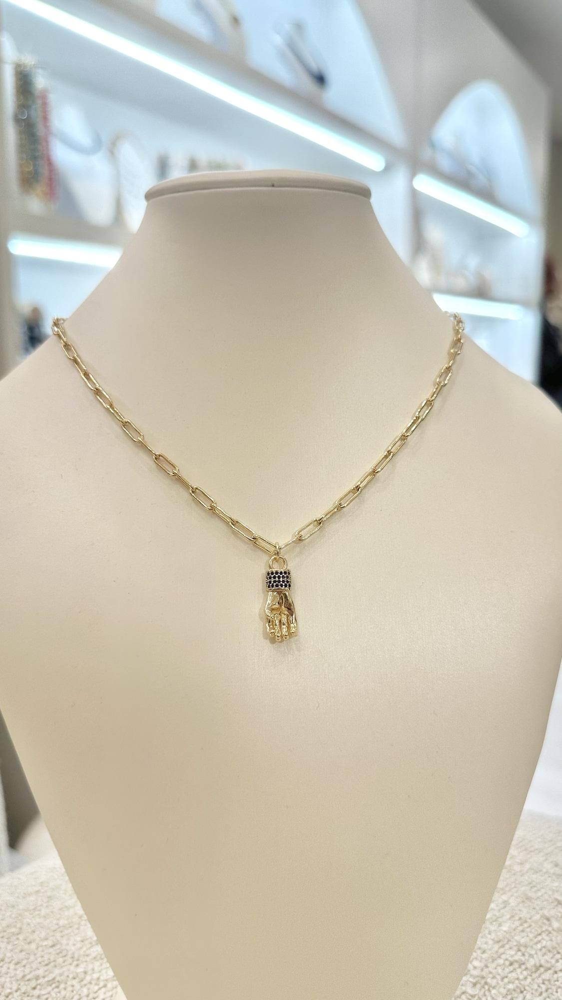 Collar en goldfilled con dije de manito protectora en goldfilled y circonias.
