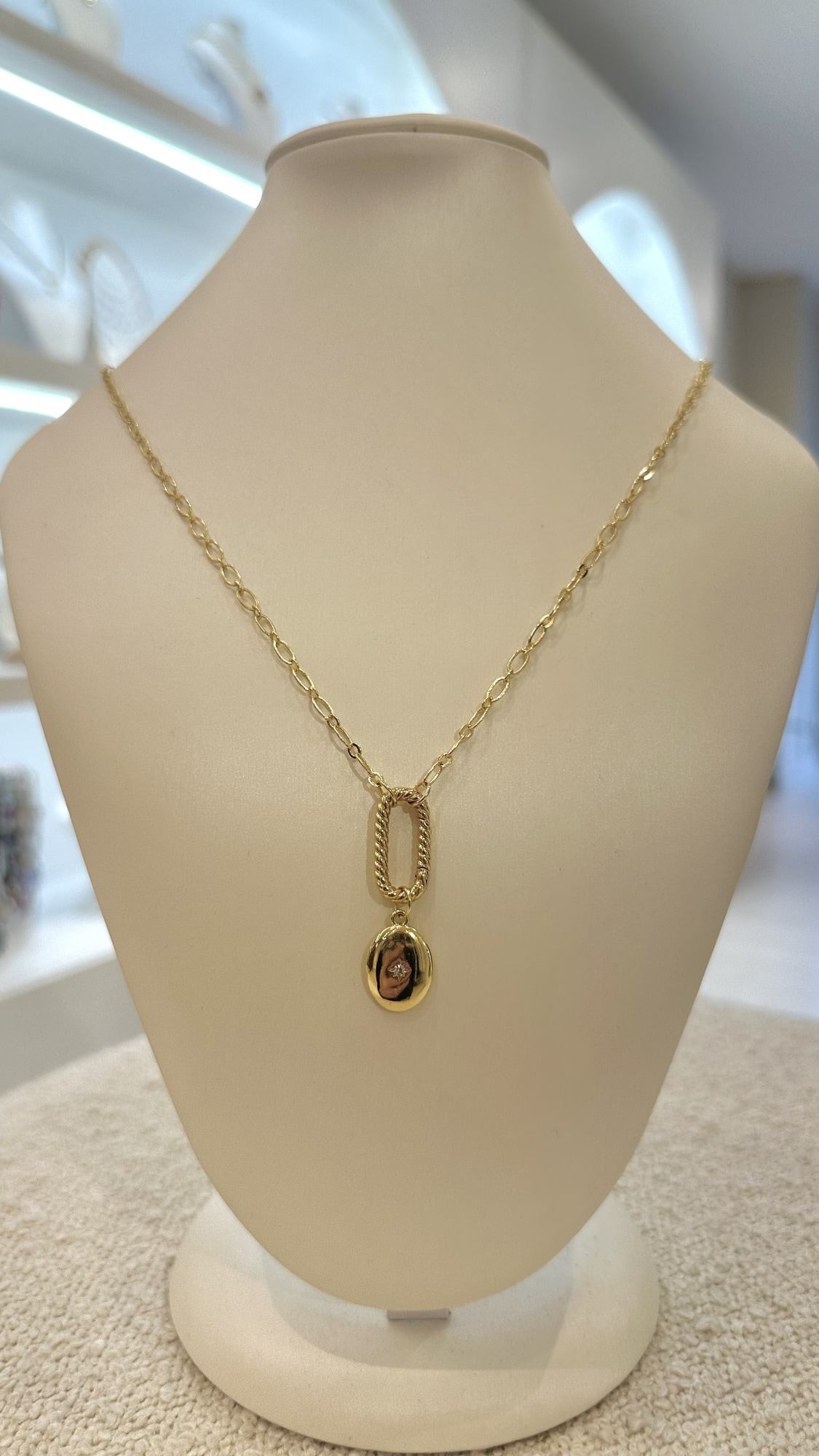 Collar en goldfilled largo, con dije con circonia y cierre marinero