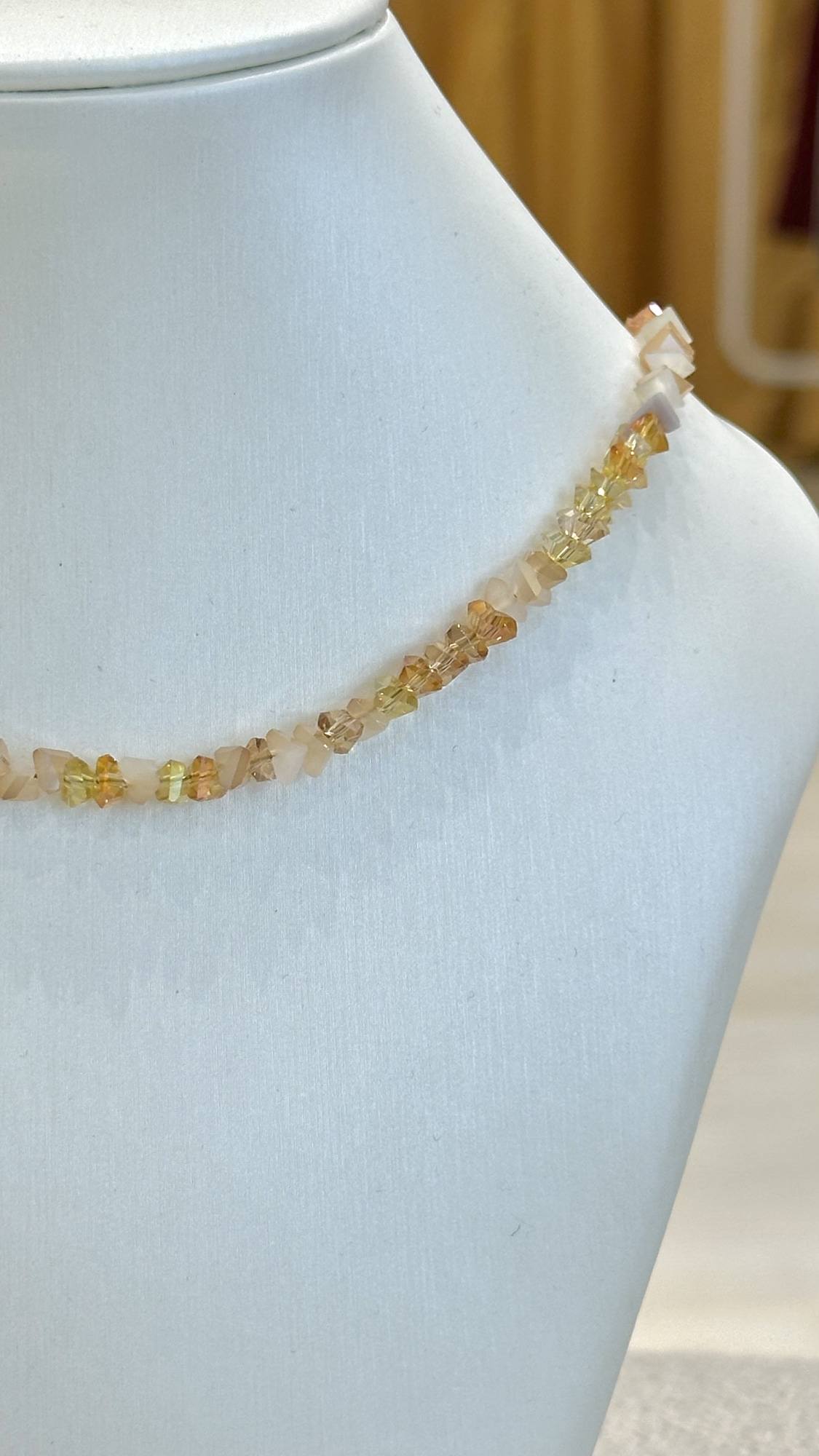 Collar en escallas de cristal en tonos ámbar.